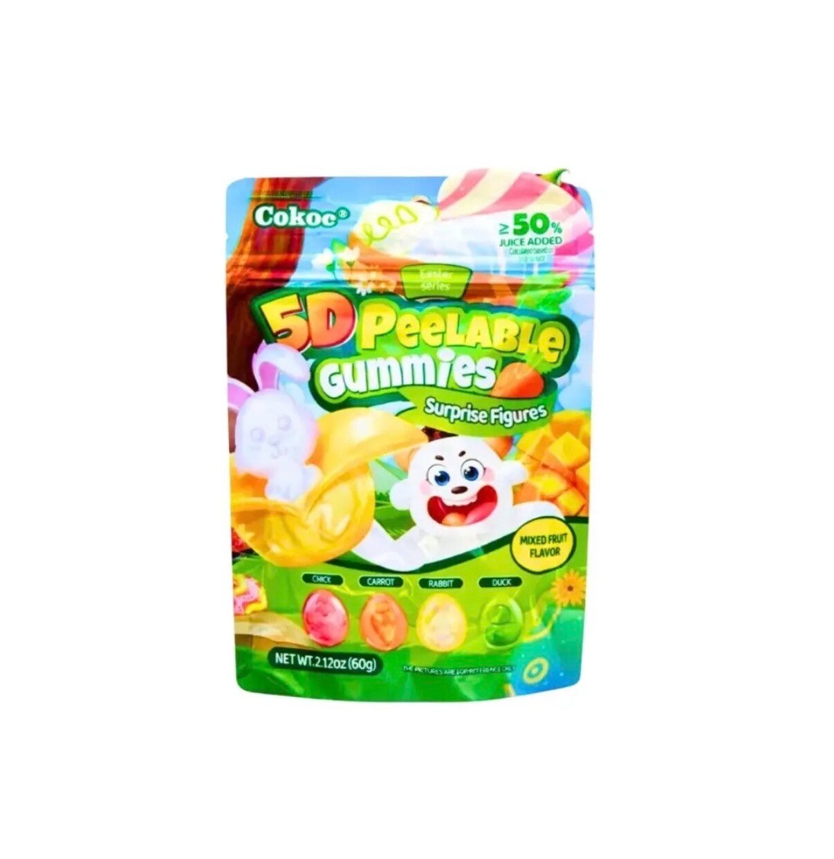 Die 5D Peelable Gummies sind der perfekte Mix aus Spaß, Geschmack und Überraschung! Diese innovativen Fruchtgummis lassen sich Schicht für Schicht „schälen“ und enthüllen dabei niedliche 3D-Figuren im Inneren.